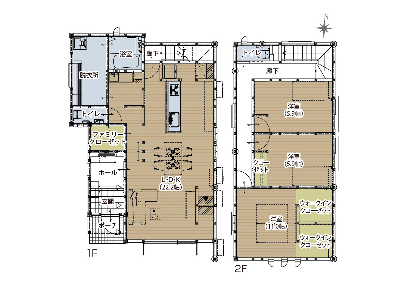 【光と影が美しく映える外観デザインと、家族の「個」も大切にする22帖の家】