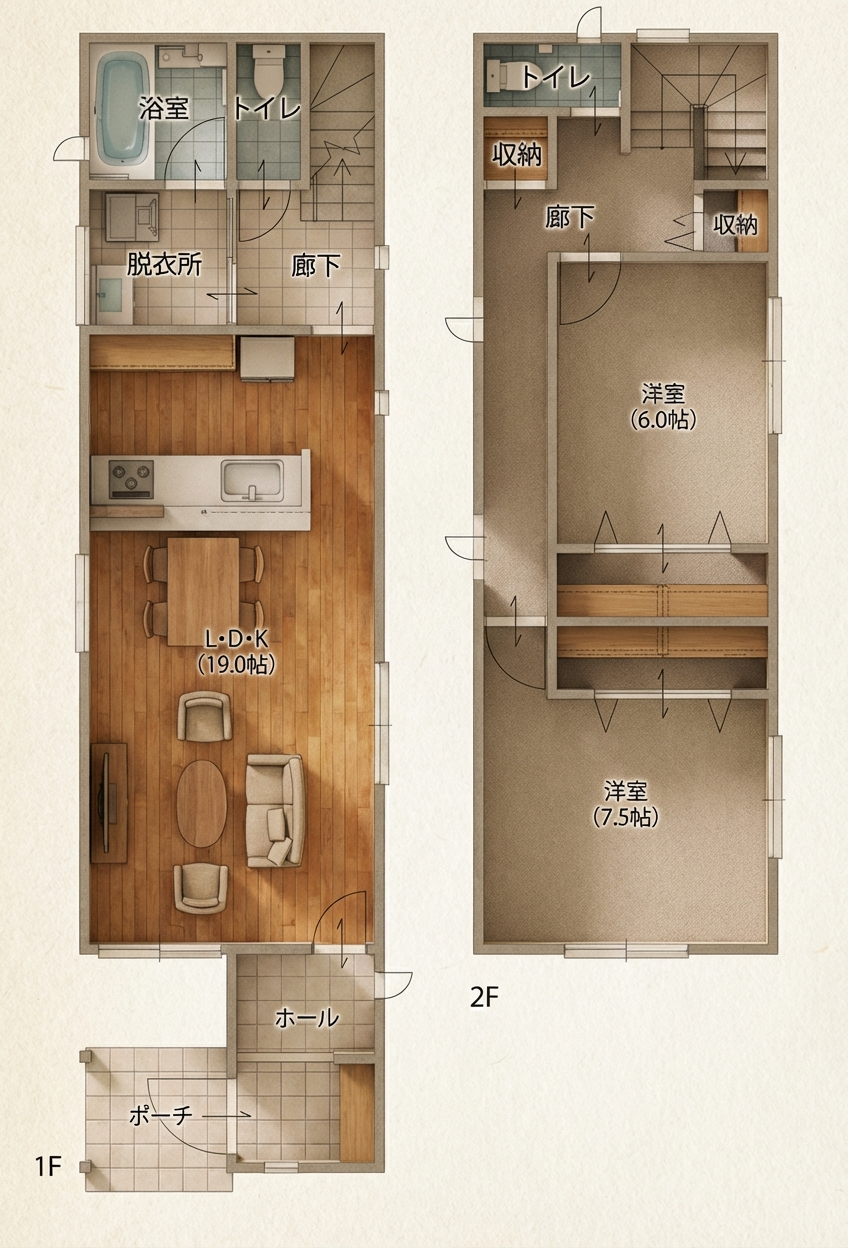 また、2階には6帖と7.5帖の洋室があり、