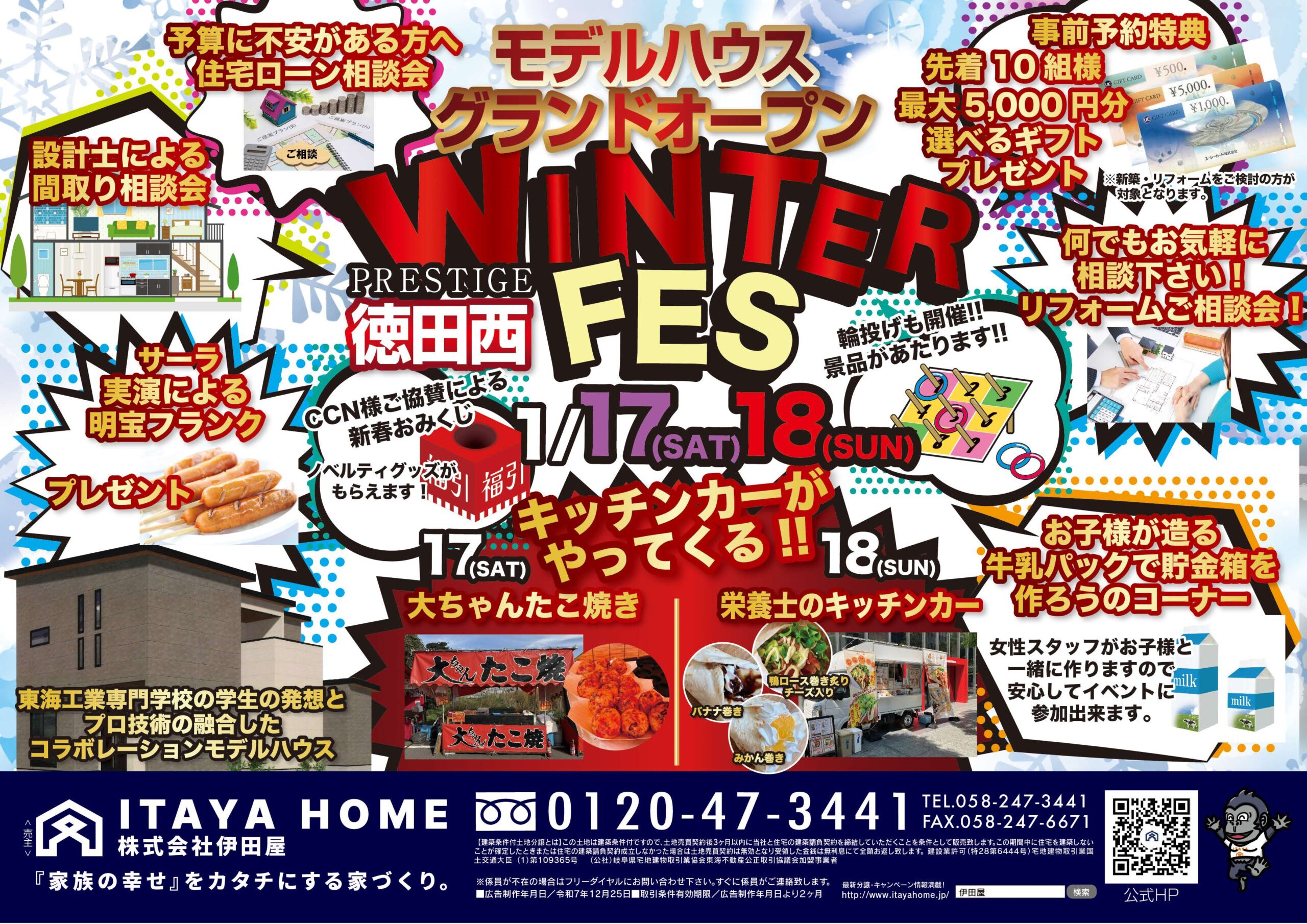 お子さま向けの 牛乳パック貯金箱づくり、サーラによる明豊フランクのプレゼント、CCN協力の 新春おみくじ など、ご家族で楽しめる企画も満載です。