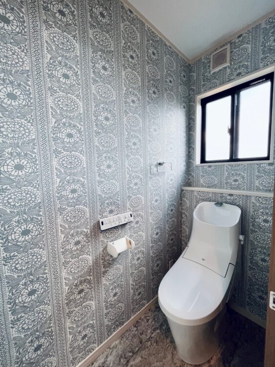 トイレはリビングや寝室に比べて空間がコンパクトなので、少し大胆な柄や濃い色を使っても、うるさく感じにくいのが特徴です。